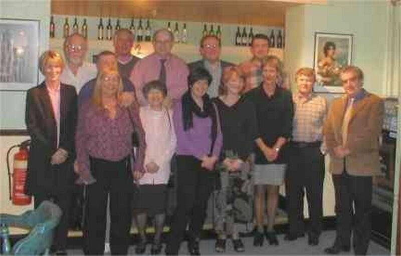 Leeds 2003. Rear Row: Tony Gask, Jock Kelly, Dave Lawrence, Chris Thompson, Steve Wright - Front Row: Mrs Gask, Barry & Mrs Jarvis, Mrs Lawrence, Mrs Good, Mrs Thompson, Mrs Wright, Norm Rooks, Pete Good.