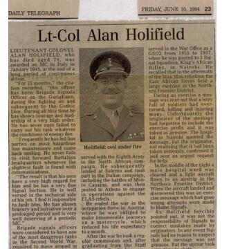 col holifield obiturary daily telegraph