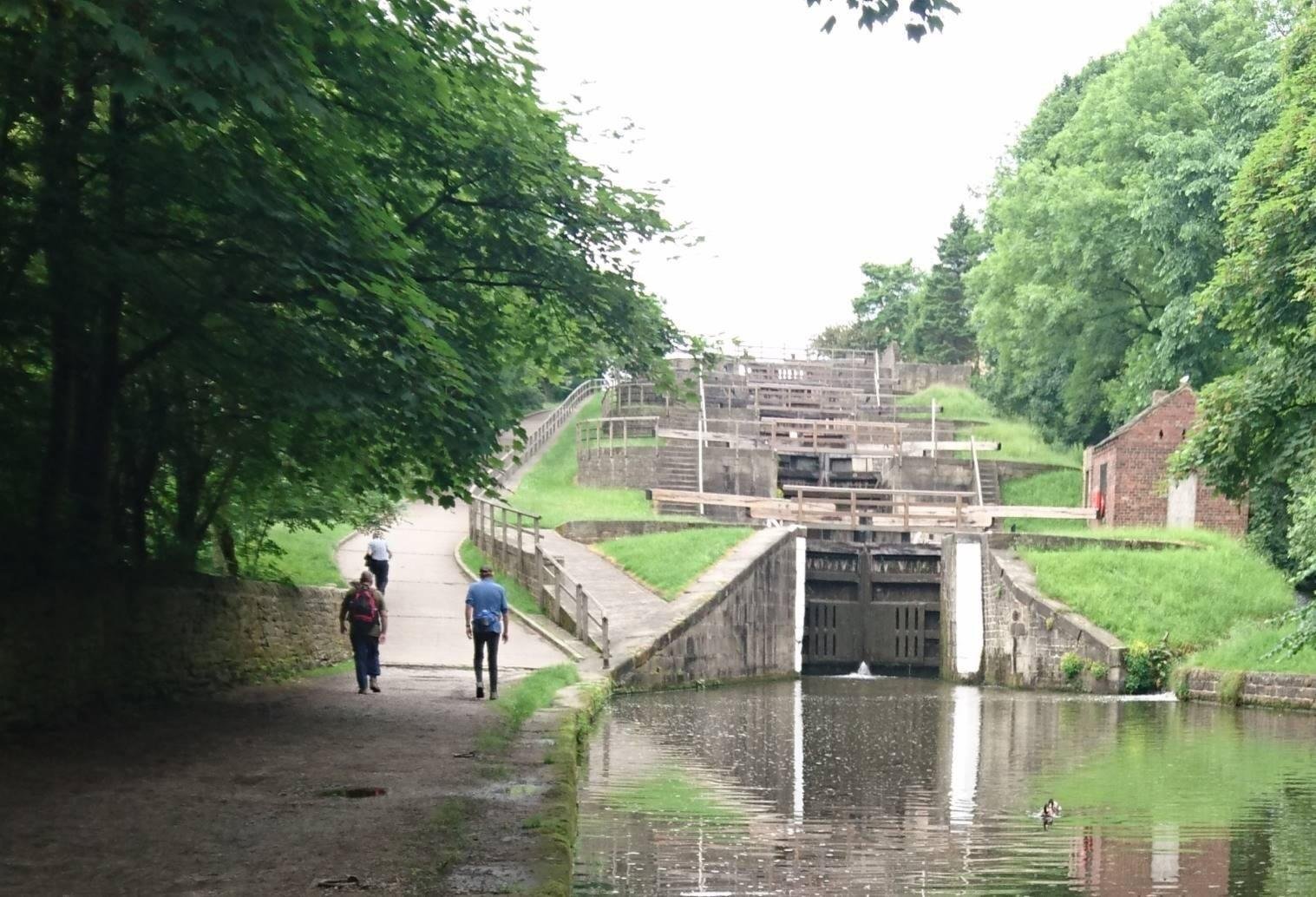 The climb up Bingley 5 Rise Locks.