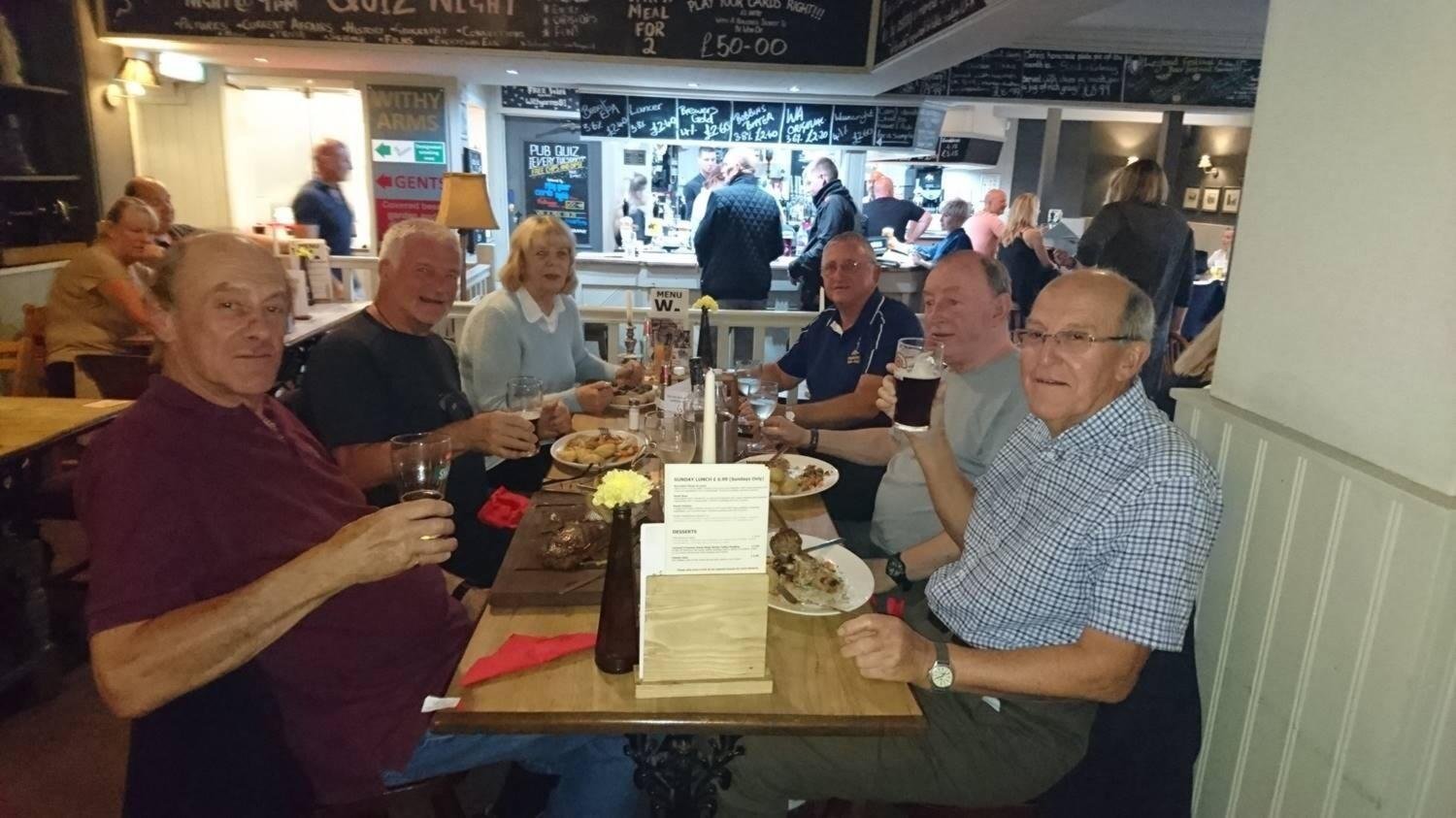 End of day 6.The Withy Arms Leyland.Good food, good wine/beer and most importantly good company. Cheers to Denbury Boys.