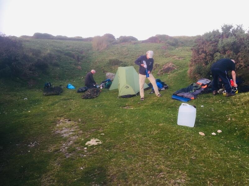 Ten Tors 2021 - 2001hrs Setting up camp. L to R John, Andrew & Bob who re-joined us for a “Camp out”.