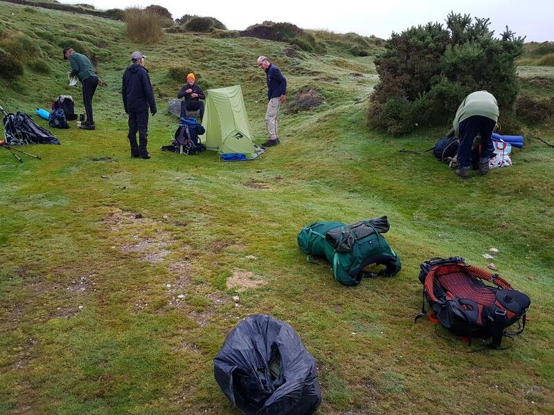 Ten Tors 2021 - 0624hrs waiting for support vehicle( George) to collect our kit. L to R Bernie, Chris, John, Andrew & Bob.
