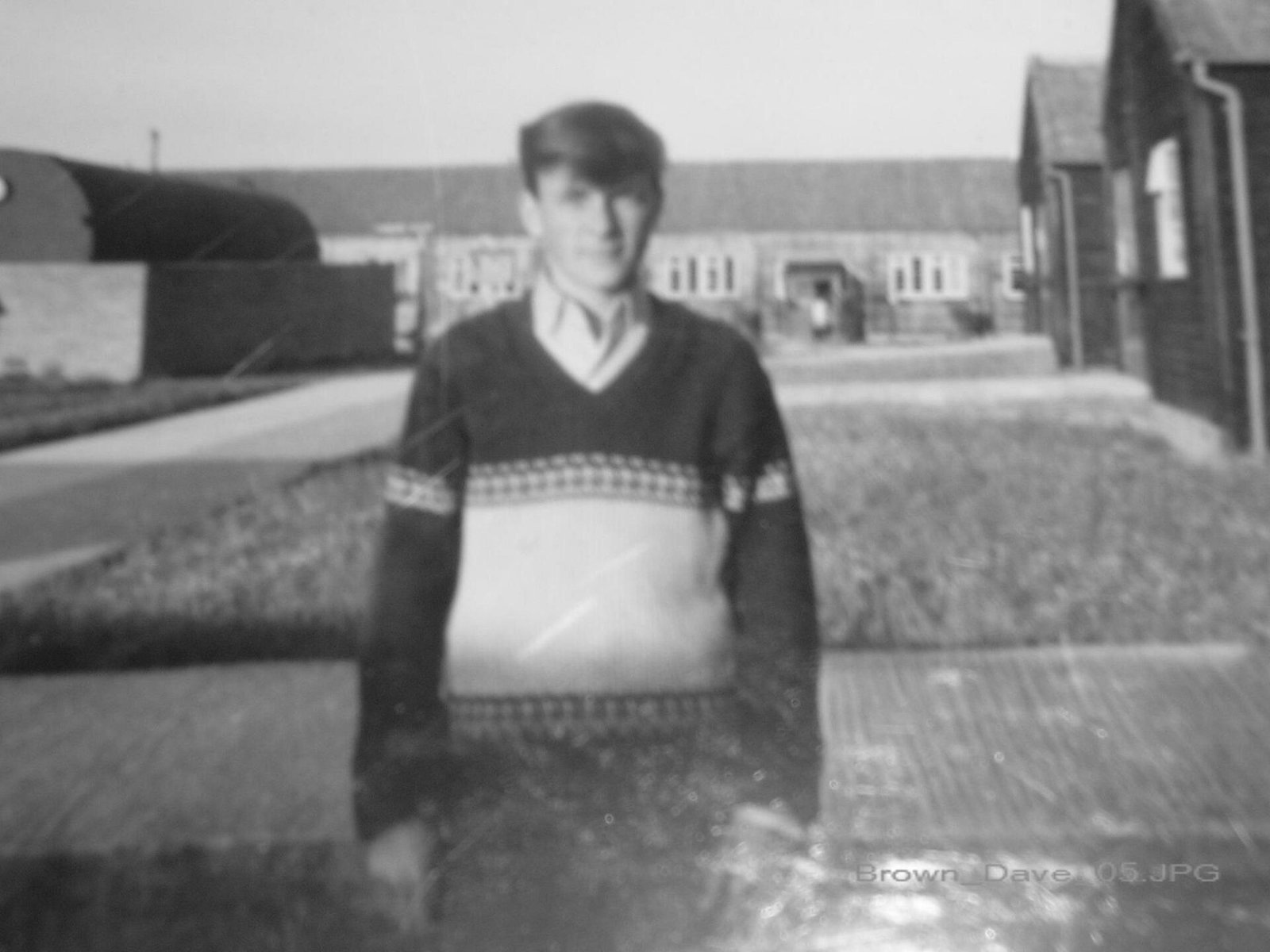 Dave Brown outside Kohima Troop (NAAFI in the background).