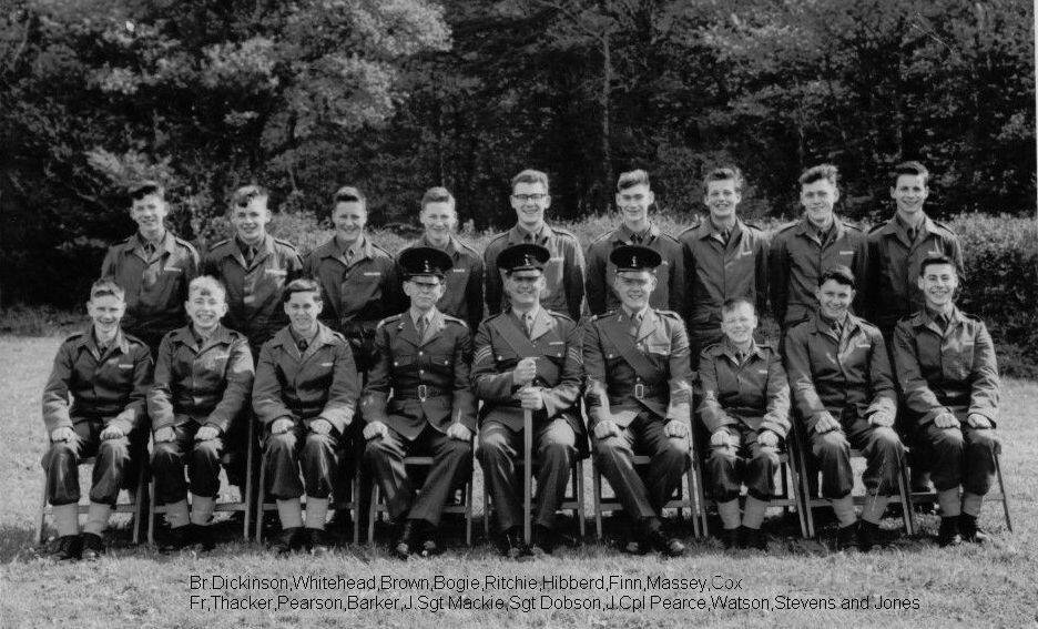 Rear Row L to R: Dickinson, Whitehead, Brown, Bogie, Ritchie, Hibberd, Finn, Massey, Cox - Front Row: Thacker, Pearson, Barker, JSgt Mackie, Sgt Dobson, Lcpl Pearce, Watson, Stevens, Jones