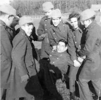 Spud Murphy being got at! - Mike Digwood directly behind him. Tich Liversey on left squinting.
