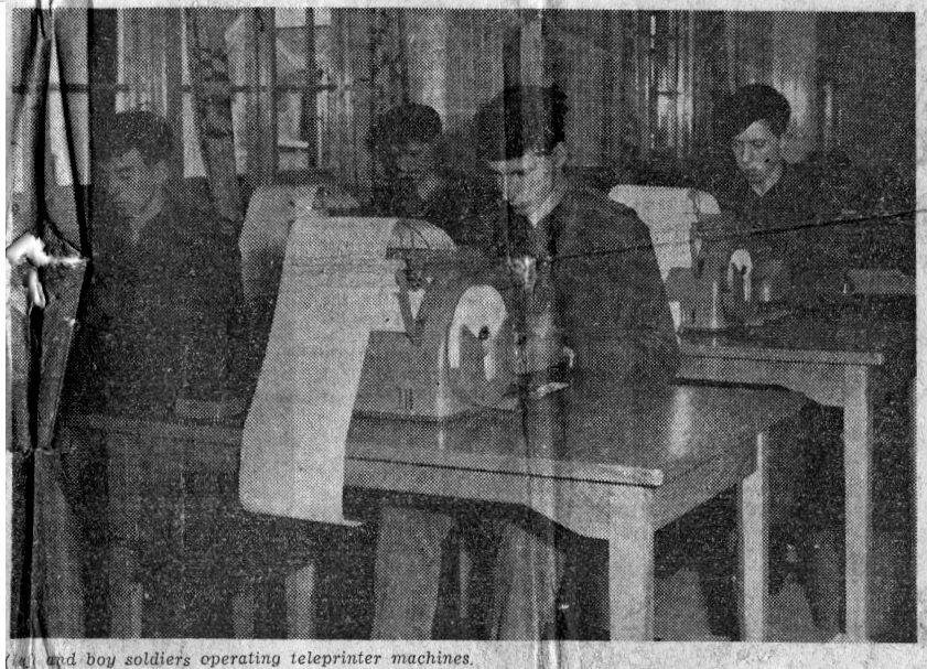 Teleprinter (Siemens T100) Training - L to R: ?, Roy Foy, Gibb, Tony Gask.