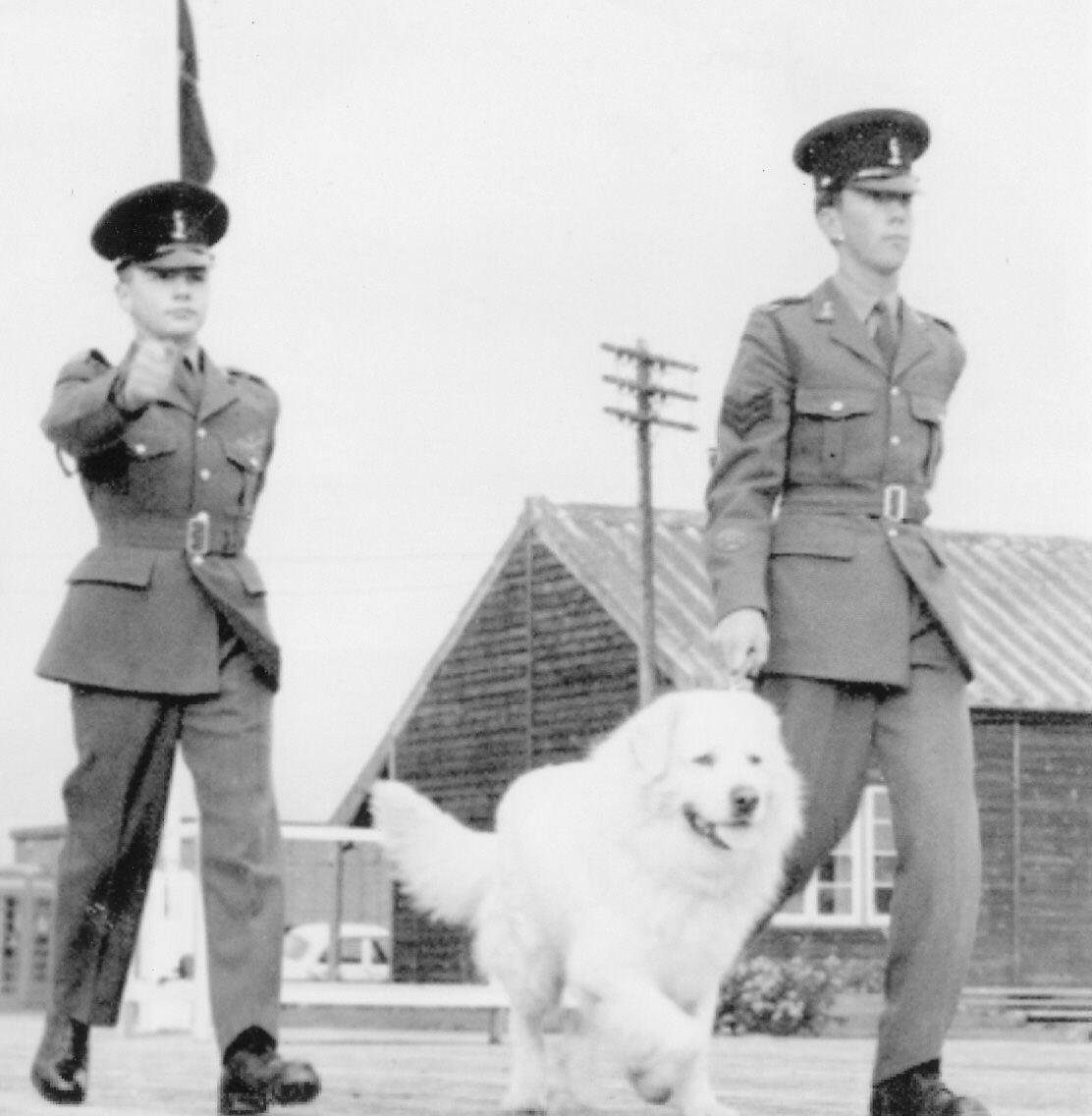 Keith Greenhalgh, Jsgt Jim Orman with regimental mascot.