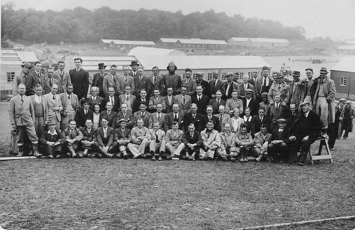 Dave Henle - The rough looking crowd in the group photo are the people that built the camp. It was taken on the day the camp was completed. My wifes father and grandfather are in the photo. Her father, Frank Wallace, is third row back 8th from the right. We havn't got a clue which one her grandfather is.