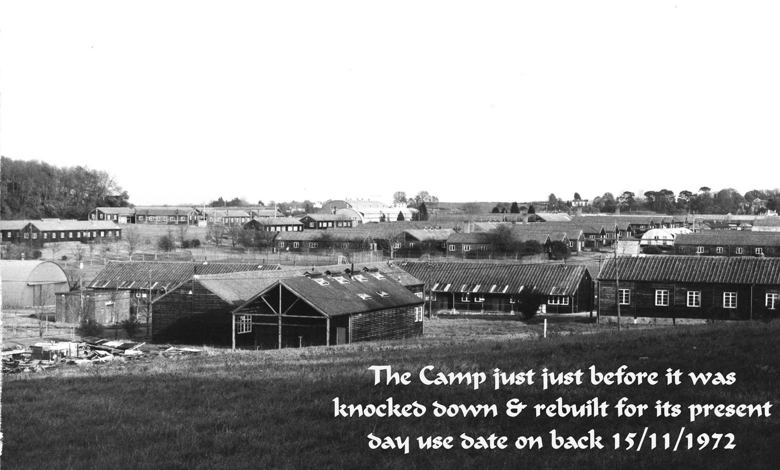 The camp just before it was demolished and rebuit for its present day use (date on rear of photo 15 November 1972)