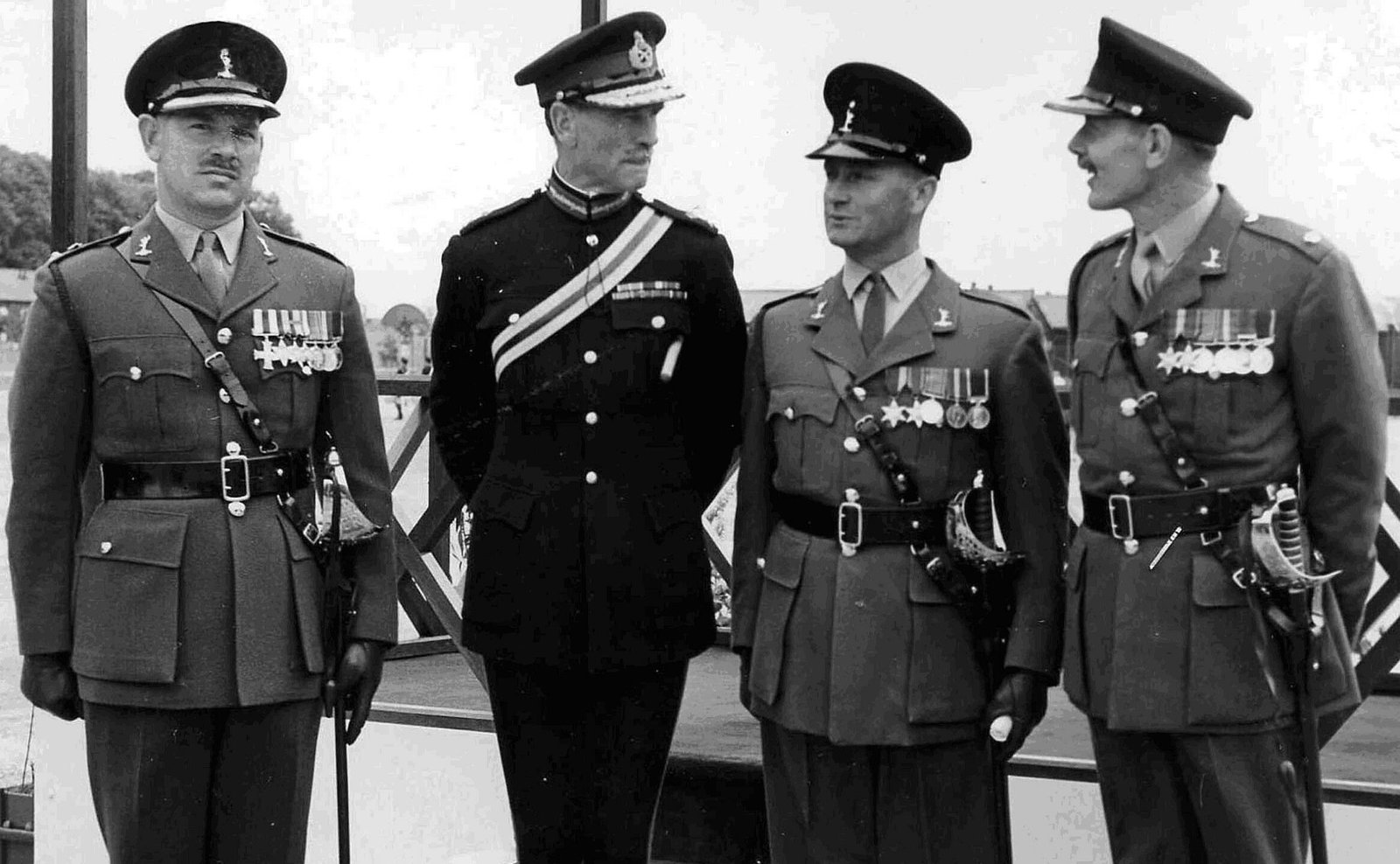 Lt Col A Holifield MC, SO in C Major General AMW Whistler CBE, RSM WOI SG Pavey & Maj MD Scott.
