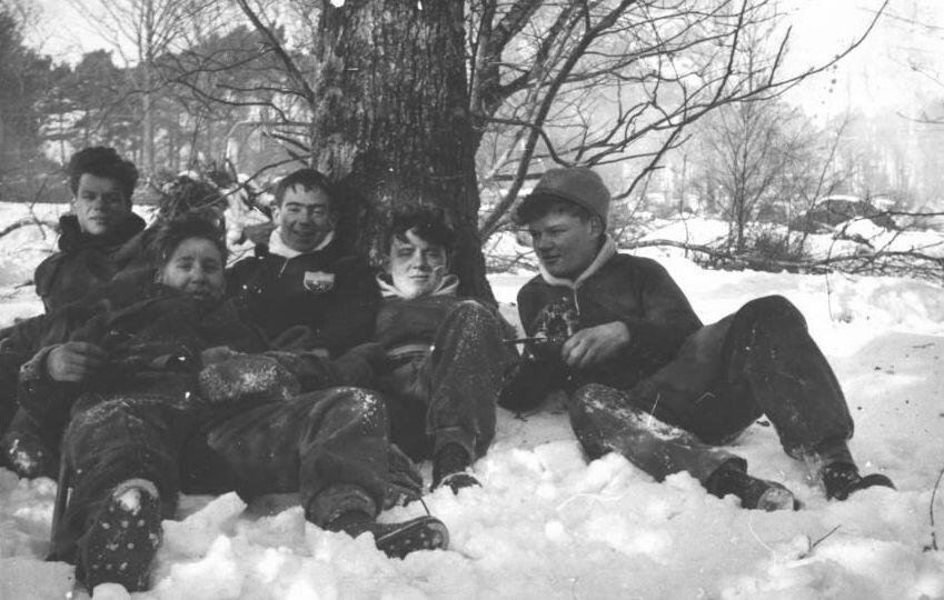 In the snow - Charlie Wickham (3rd from left).