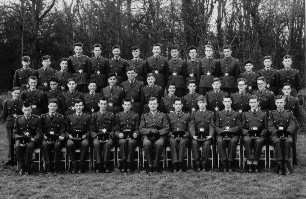 White Spear Summer 1964 - L to R: Rear row:Chris Holland, David Flay, ?, ?- ?, Marvin, ?, Jono Johnson, John Soppit, Mick Biglin, John Plunkett, Ian Guirey, ?, Geoff Irving, ? - Centre row: Charlie Drake, Preston, Gary Coffey, John Freshney, Bob Riddell, Pete Sharp, ?, Scouse Murdoch, Eddie Lee, Ian Ireland, Dick Sedgebeer, TJ Julyan, Tojo Taylor, Tommo Thompson - Front row: JLCpl Robo Robertson, JLCpl Aggi Agrell, JLCpl Taff Bartlett, JCpl Jim Keeping, JSgt Bill Mackie, Lt Geoff Maude, Sgt Dougie Livermore, JCpl Ken Kay, JLCpl Bernie Madsen, JLCpl Mick Wymms, JLCpl PP Mason